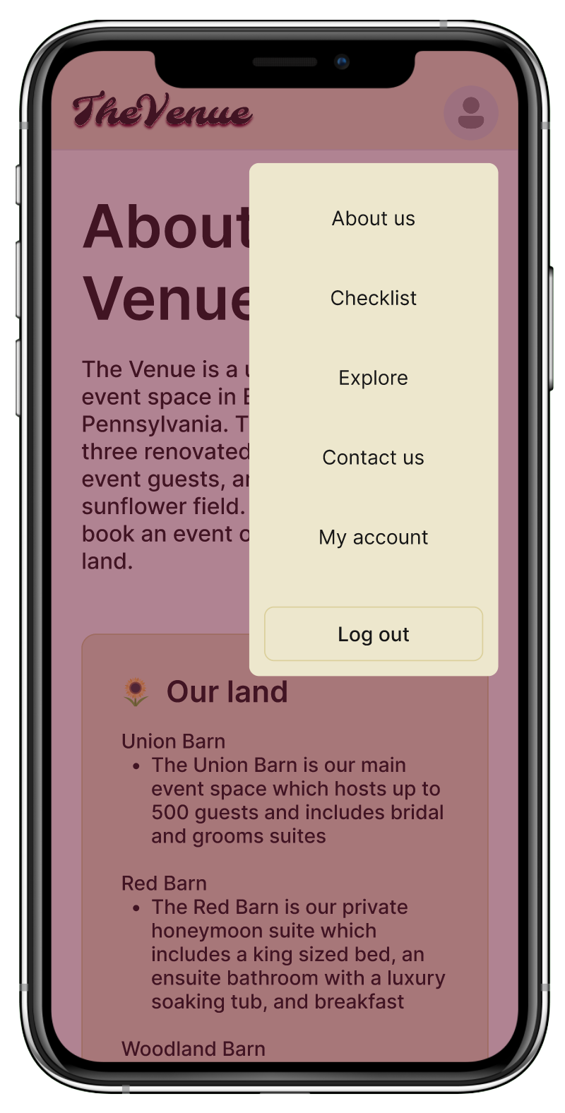 The Venue is an App/Website for a Wedding Venue where clients can track their wedding planning and find inspiration for their special day.